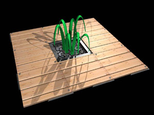 こちらはデビット・ランケッシャー(David Lancashire)の作品ですが、先住民の芸術表現うまく行っている数少ない事例です。長年に渡ってこういう作品を作っていますが、先住民的表現を偏見なく使っています。彼は19歳の時に英国から来ましたが、新しく流入してくる人の方がかえってオーストラリアの土着文化を正確に捉えているように思います。
