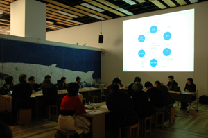 両社の先進的な事例を紹介していただき情報を共有した上で、20名ほどが3つのグループに分かれてディスカッションを行いました。歴史的な世界金融破綻、経済不況のみならず、環境を中心にした新たなモノやシステムつくりの社会構造や仕組みの変革が加速しています。トップランナーを目指す企業の中で、デザイン部門が新たな経営貢献へのプレゼンスを高める為に、如何なる機能、ミッションを持つべきか、活動、取組み、基盤になる人材教育の在り方を探り提起しました。