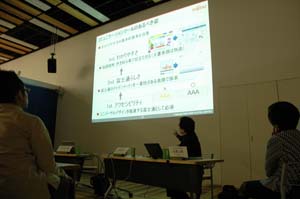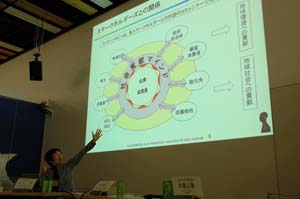 富士通の加藤さんですが、「グリーン・ポリシー・イノベーション」ということについて、お話いただきました。ユニバーサルデザインの観点から、ワークスタイルにどうITをいかしていくかという点で、結果的に顧客に快適なサービスを提供していくとのことでした。ここでキーワードとなるのが、連帯最適化、または最適化ということだと思います。ものだけでなく「こと」もデザインしていく、現場にある様々な課題を可視化し、関係者が問題を共有化し、それぞれ問題がないかを共有化しようということです。