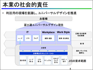 具体的な商品として、らくらくフォンやATM、UD店舗、サステナブルとしては業界に先駆けたグリーンPCが挙げられます。